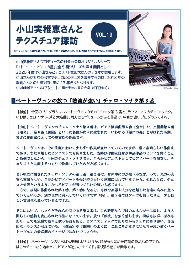 「小山実稚恵さんとテクスチュア探訪Vol.19」インタビュー記事をアップしました。